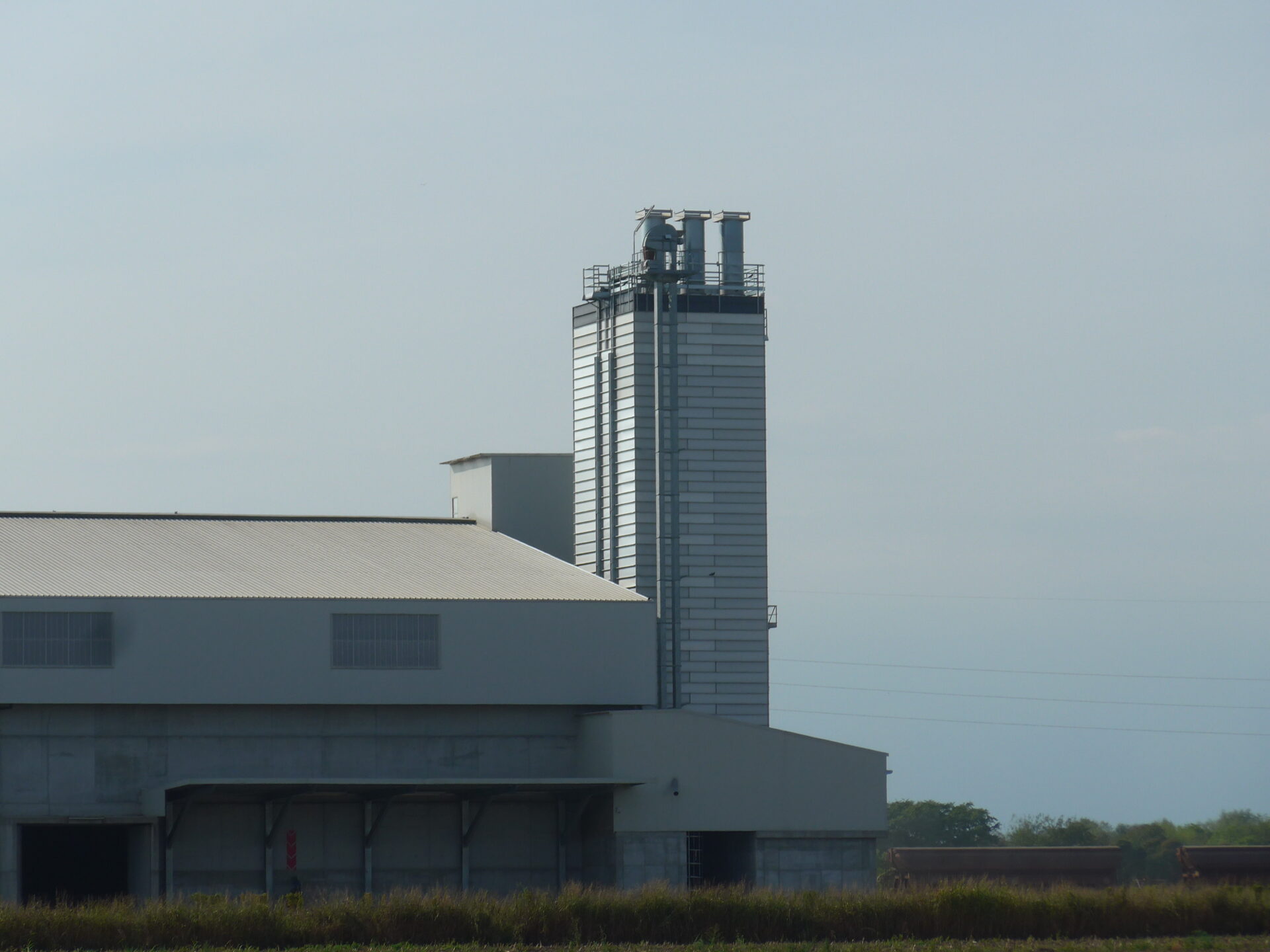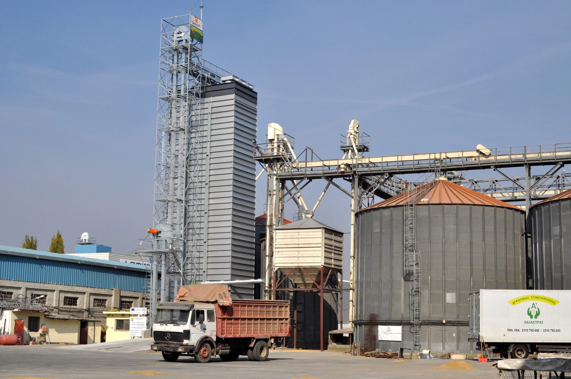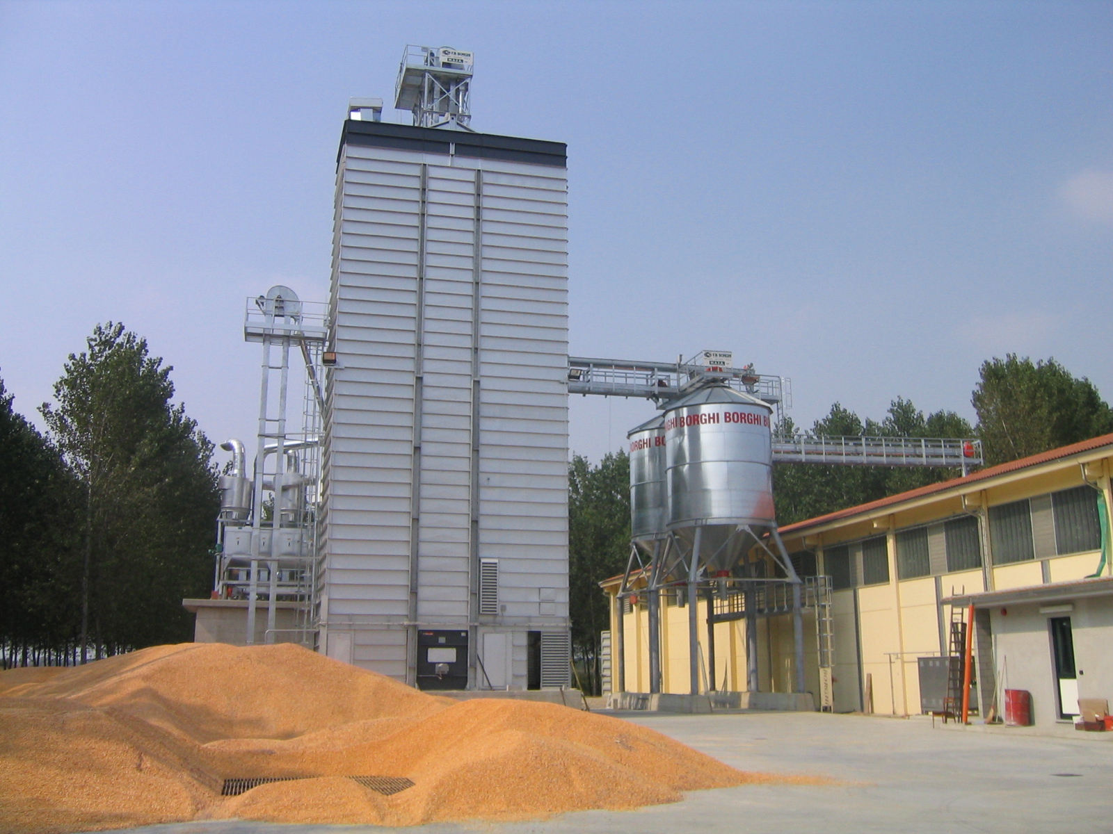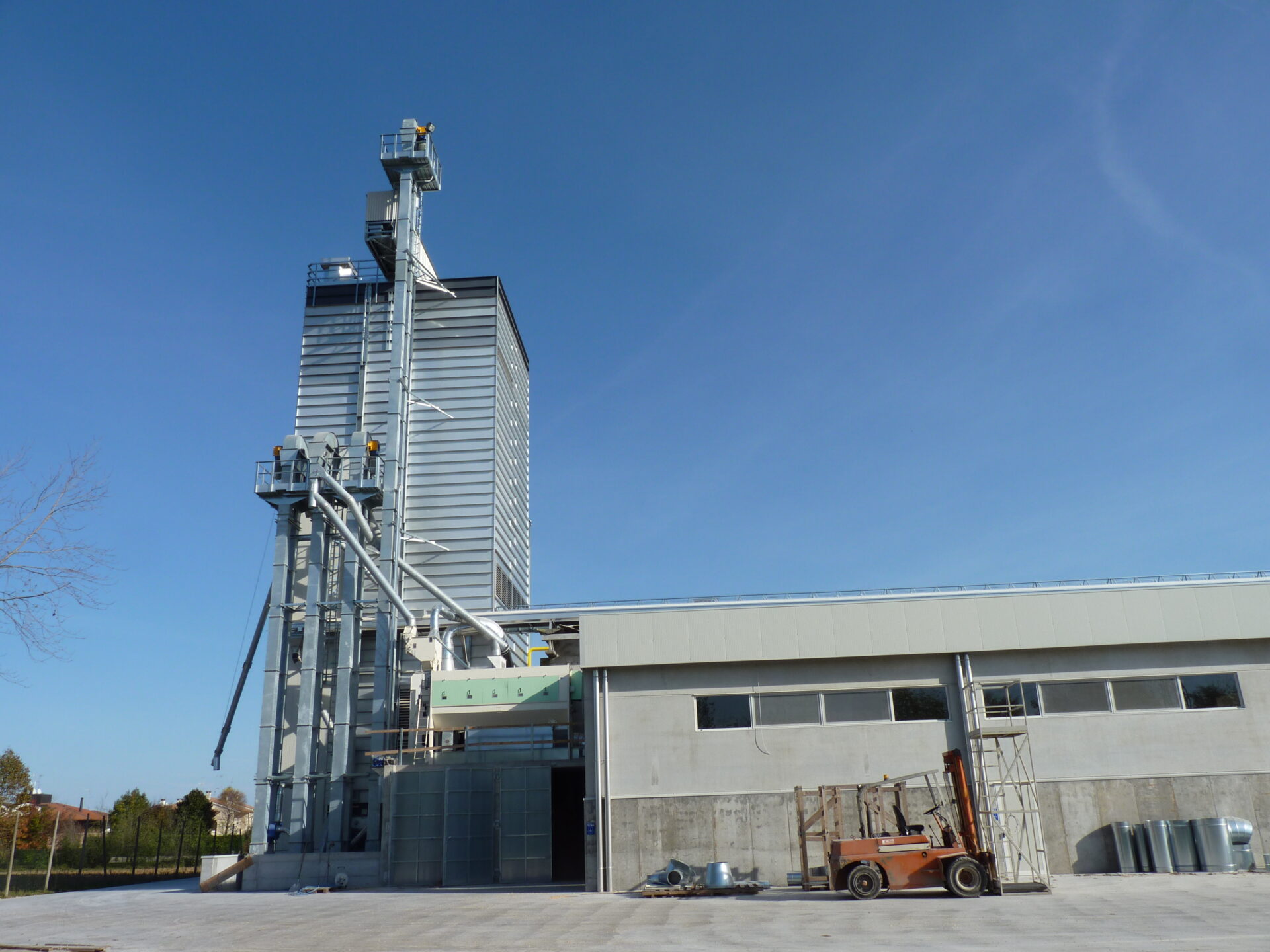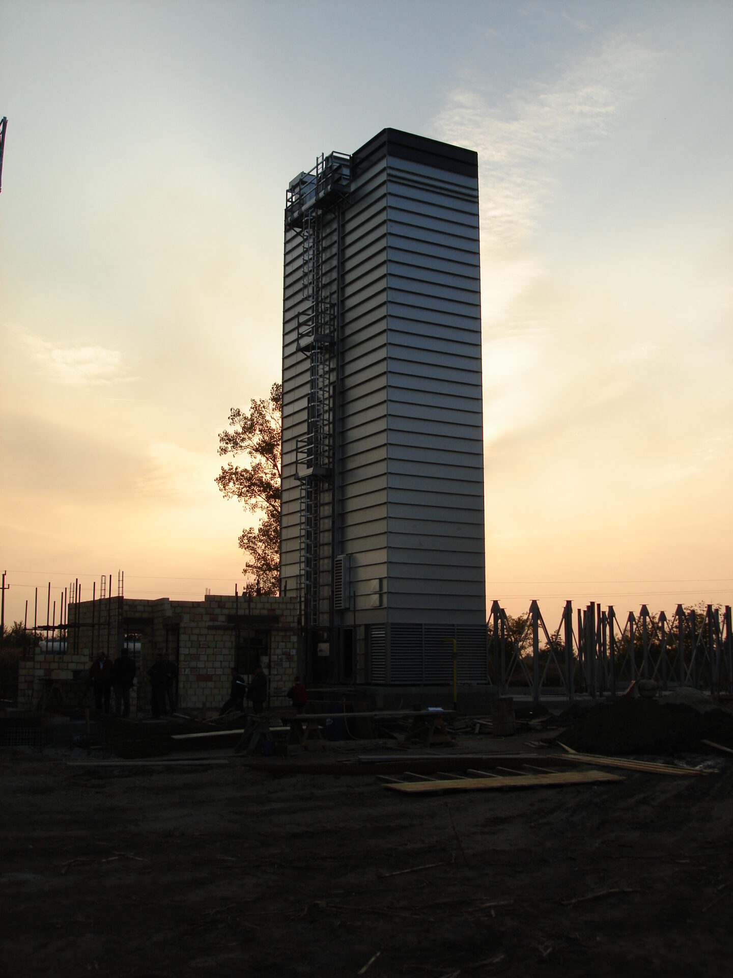 — Сушильная башня со ступенчатыми тоннелями из стали ALUZINK; вытяжные тоннели верхней части сушилки из нержавеющей стали; внутренняя обшивка панелями из стали ALUZINK.