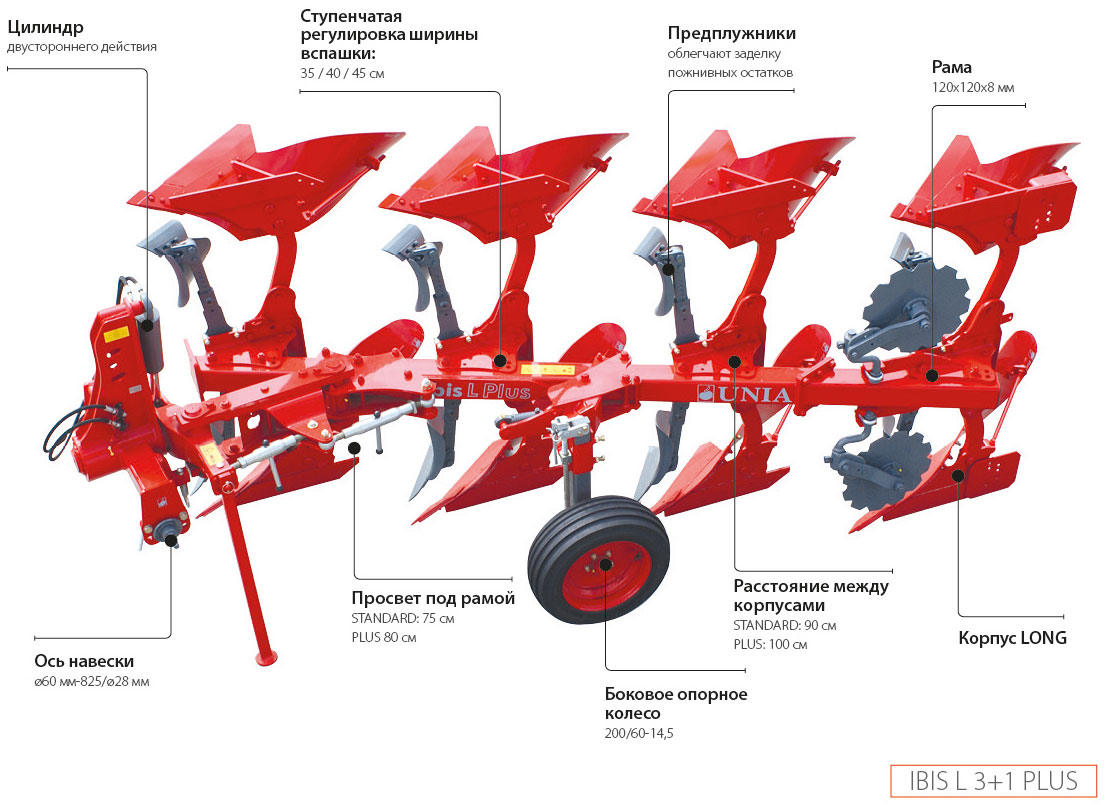 Обратный звонокПлуги навесные двухсторонние IBIS L предназначены для тракторов мощностью 80÷120 л.с. для выполнения средней и глубокой беззагонной вспашки.