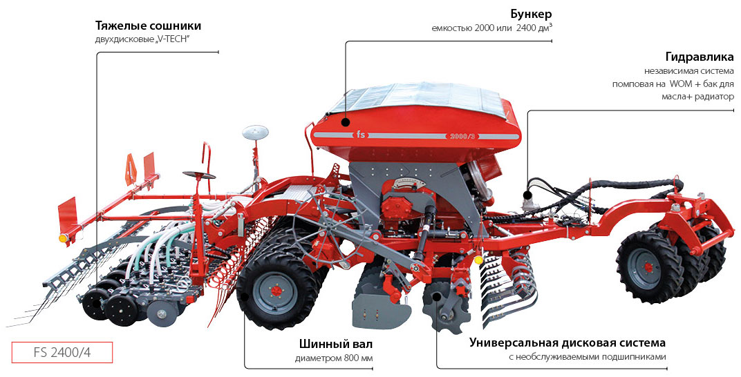 Обратный звонокПочвообрабатывающий и посевной комплекс пневматический FS 200/3, FS 2400/4