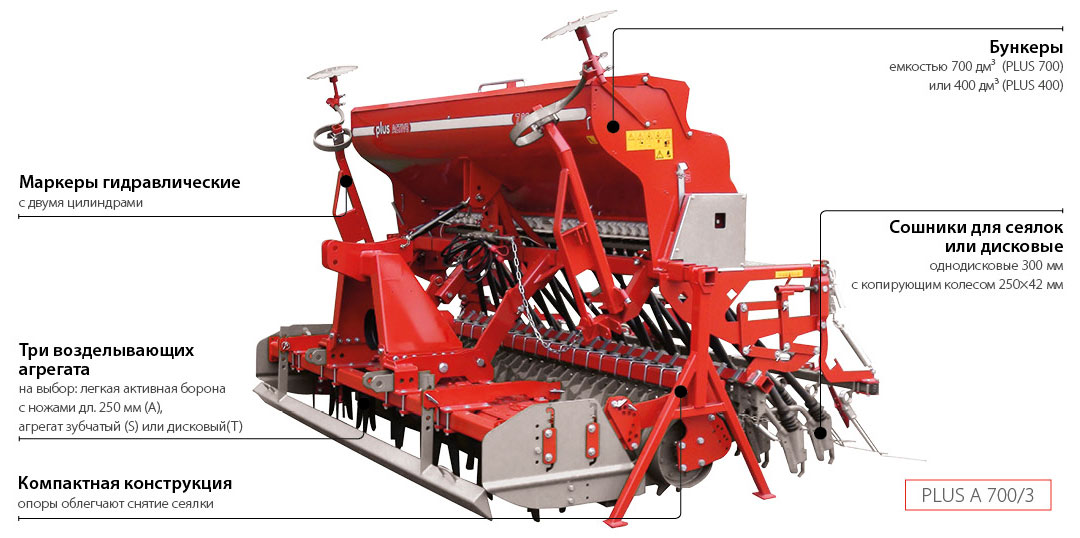 Обратный звонокПочвообрабатывающий и посевной комплекс механический PLUS 400/3