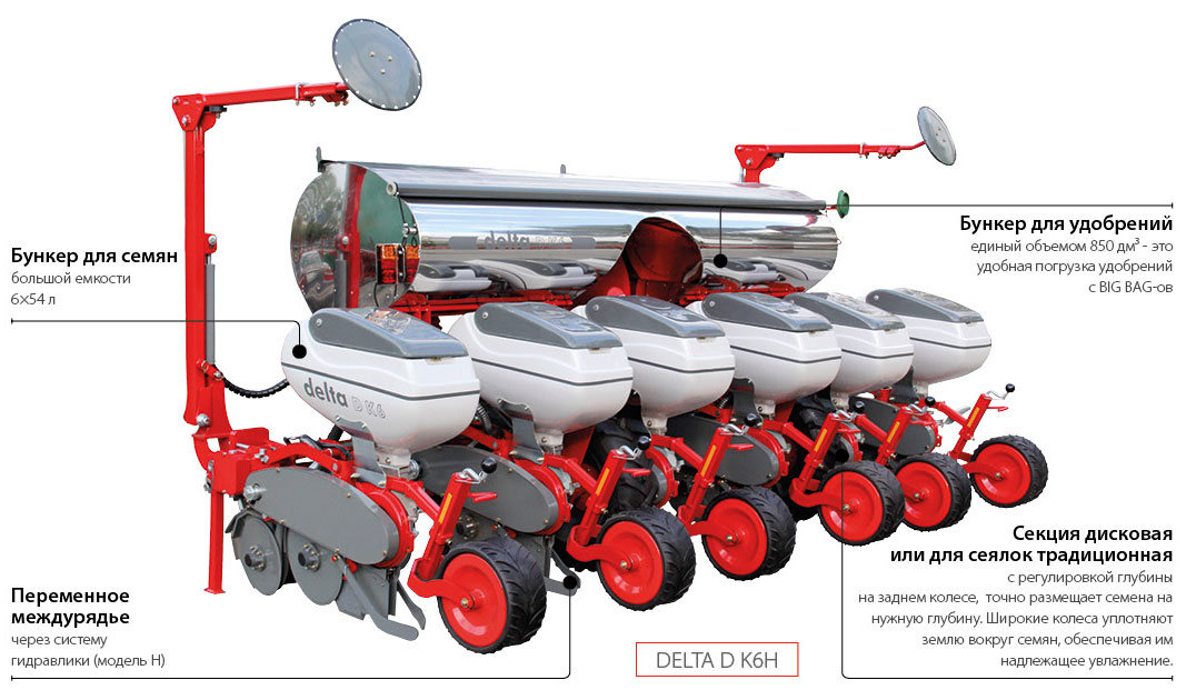 Обратный звонокПневматическая точечная сеялка для кукурузы DELTA