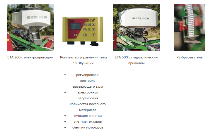 | Пневматическая сеялка ETA 200 (привод электрический) | 93 | 12 V / 25 A | 60 | 1÷6 |