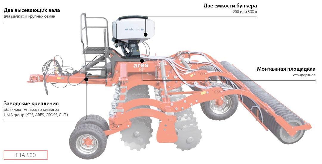 | Пневматическая сеялка ETA 500 (привод гидравлический) | - | 12 V / 25 A | - | 1÷12 |