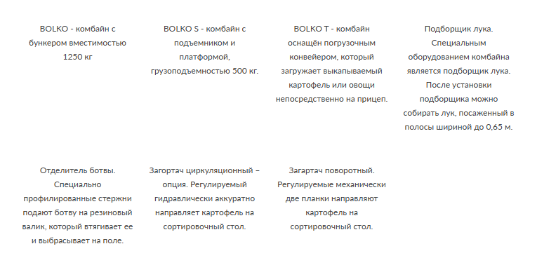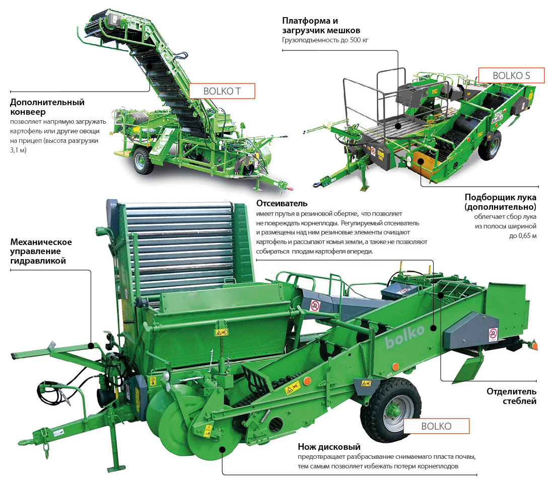 Обратный звонокКомбайны для уборки картофеля и овощей BOLKO