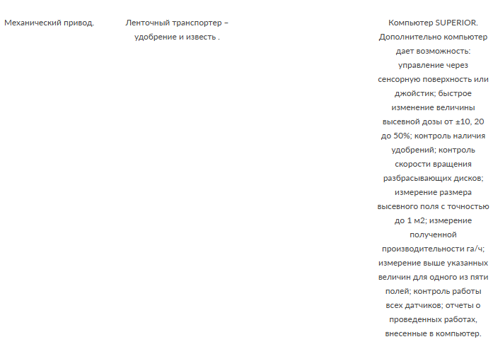 | Рабочая ширина -гранулированные удобрения [м] | 10÷36 | 10÷36 | 10÷36 | 10÷36 |