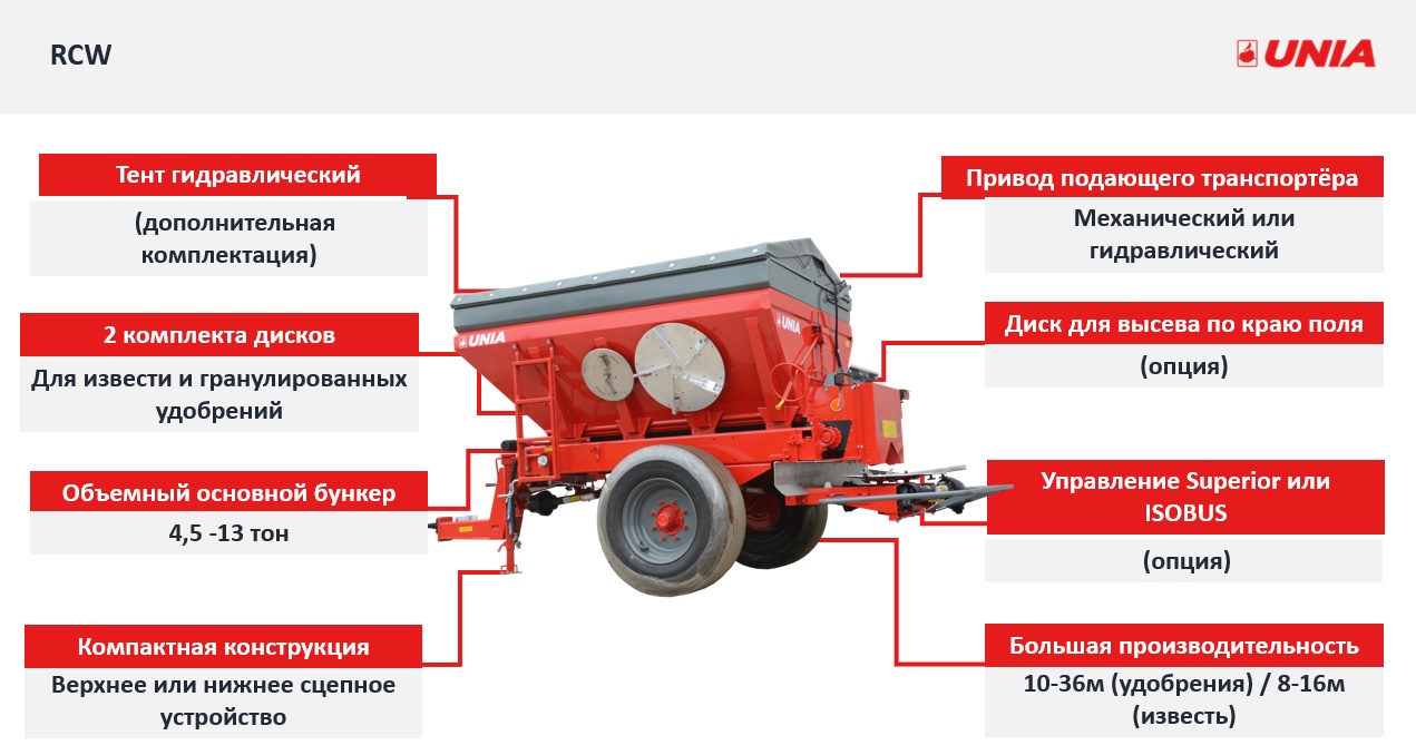 Обратный звонокПрицепные разбрасыватели удобрений и извести RCW